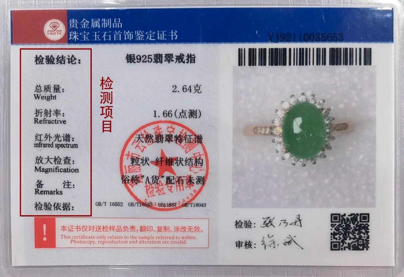 搜狐体育珠宝玉石首饰鉴定证书背面有“检测项目”